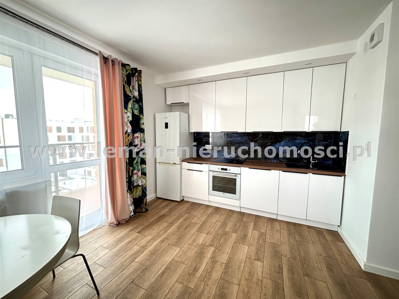 Aneks kuchenny wyposażony w lodówkę, zmywarkę, piekarnik, płytę indukcyjną oraz okap